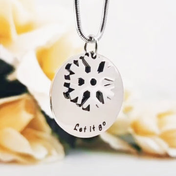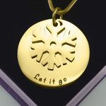 Did you know I was inspired by the song "Let It Go" from the film Frozen? That's why they named me the Let It Go necklace. I'm here to remind you of peace, hope and not taking life too seriously. Personalise me with a name and I'll be your lucky charm.