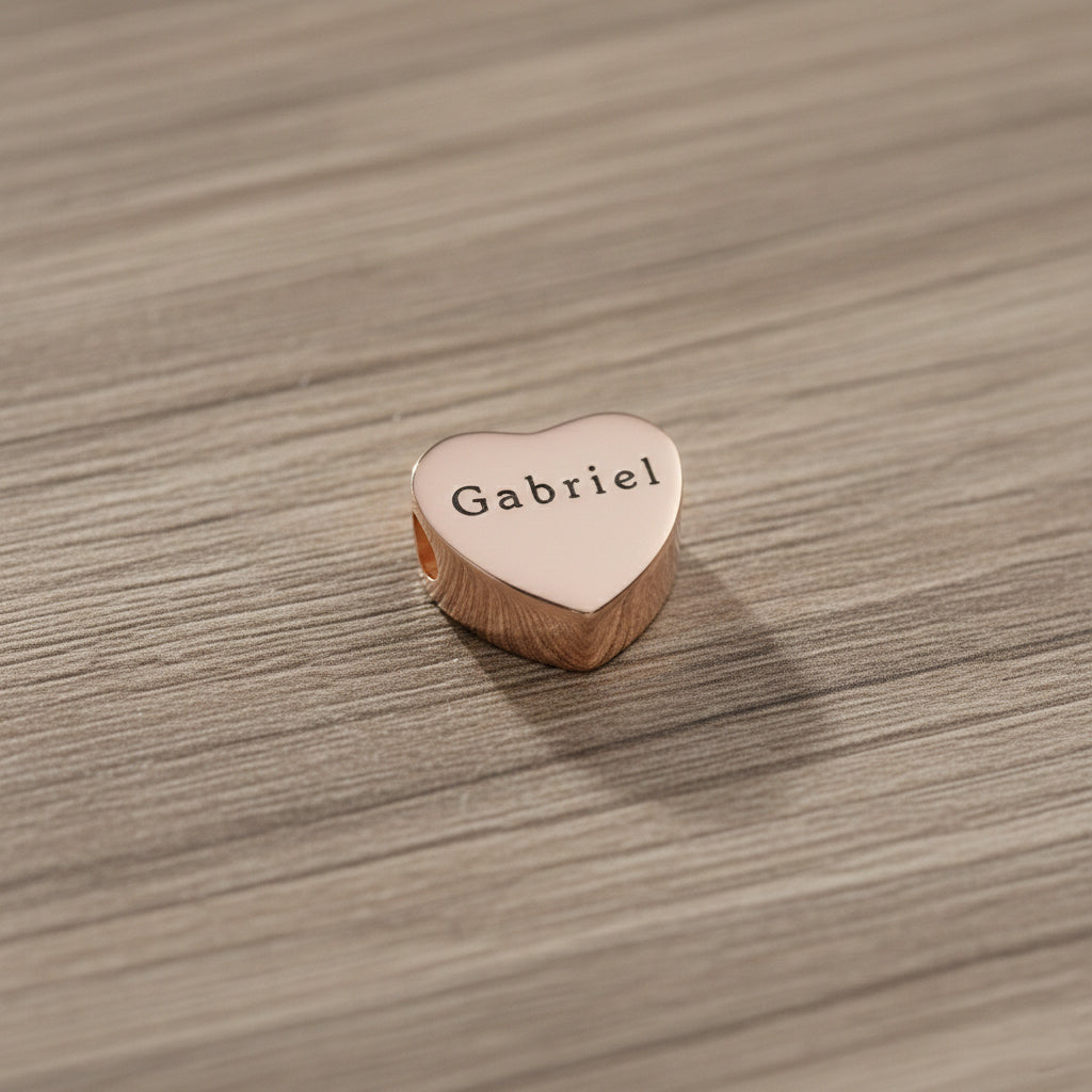 belle fever custom engraved heart charm bead in rose gold, Moments bracelet charm compatible with European style jewelry