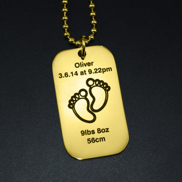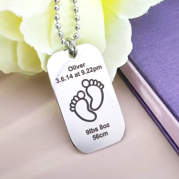 Surprise your loved ones with a heartfelt gift that they'll treasure forever with our Newborn Baby Dog Tag Necklace .